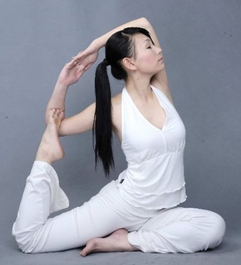 舞蹈式,能使腿部肌肉得到很好的拉伸,同时能够起到提臀的效果。可以加强腿部肌肉的协调性,减少腿部多余脂肪,有美腿塑形的功效。脊柱柔和后弯,可以很好地加强脊柱的灵活性,锻炼腰背肌肉。